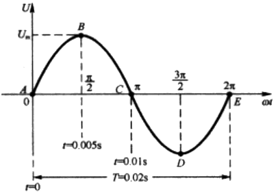 對于初相位為0°的交流電,可用公式表示:U=Um×sinωt,公式中U為交流電壓的瞬時值,Um為交流電壓的最大值,ωt為交流電壓的相位,其中ω稱為交流電的角頻率,ω=2π/T=2πf。利用公式可以求出交流電壓在任一時刻的相位及該時刻的電壓值。