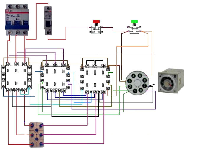 圖5 星形-三角形降壓?jiǎn)?dòng)電路元件實(shí)物連線圖