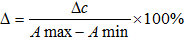 , 式中△c為測(cè)量的絕對(duì)誤差,Amax為測(cè)量?jī)x表的上限值,Amin為測(cè)量?jī)x表的下限值。