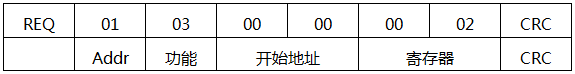①定義defbyte數(shù)組依次拼接地址碼,功能碼,寄存器開(kāi)始地址,寄存器數(shù)量,如表1所示。