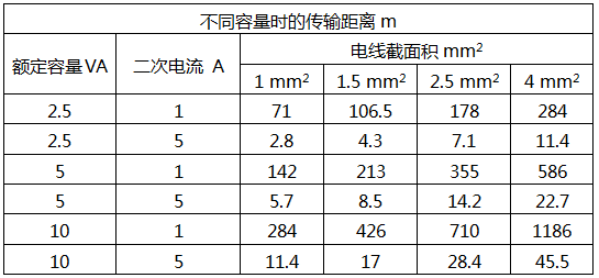大中型工廠,當(dāng)儀表和電流互感器安裝距離較遠(yuǎn)(例如45.5m)時(shí),從表2 可以看出,當(dāng)選用5A、10VA電流互感器時(shí),線截面積經(jīng)計(jì)算需4mm3;若選用1A、2.5VA電流互感器,線截面僅需1mm2。目前隨著計(jì)算機(jī)和數(shù)控儀表的普及和發(fā)展,額定二次電流為1A及以下規(guī)格的電流互感器選型已經(jīng)較普遍。