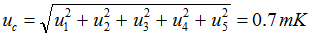 由于各標(biāo)準(zhǔn)不確定度分量彼此不相關(guān),故合成標(biāo)準(zhǔn)不確定度