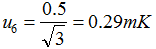 b、由一等標(biāo)準(zhǔn)電阻溫度計(jì)在水三相點(diǎn)分度可產(chǎn)生0.5mK的誤差,取均勻分布,則由此引起的標(biāo)準(zhǔn)不確定度為u8=0.29mK。