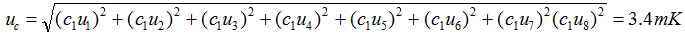 確定擴(kuò)展不確定度U=kuc,取k=2,U=1.4mK。