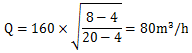 ②已知差壓變送器輸出8mA時(shí),流量是80m3/h,流量是滿(mǎn)量程的50%,根據(jù)流量計(jì)算公式計(jì)算差壓變送器差壓值
