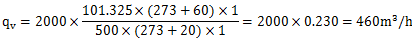 [計(jì)算實(shí)例2]某空氣流量計(jì)設(shè)計(jì)量程為0-2000m3/h(20℃,101.325kPa狀態(tài)下),工作狀態(tài)下的壓力為0.5MPa,溫度為60℃,求工作狀態(tài)下的體積流量。