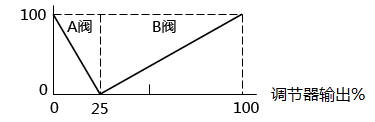 [維修小結(jié)]通過DCS組態(tài)來改變分程曲線比較容易實現(xiàn)。本例原來兩臺調(diào)節(jié)閥以調(diào)節(jié)器輸出50%為分界?,F(xiàn)在以25%為分界,使分程曲線的區(qū)間大小不一樣,如圖1所示,使兩臺調(diào)節(jié)閥的動作快慢不同,區(qū)間長的B閥動作慢,區(qū)間短的A閥動作快,既符合了工藝要求,控制效果還滿意。