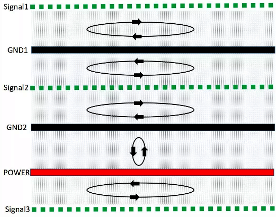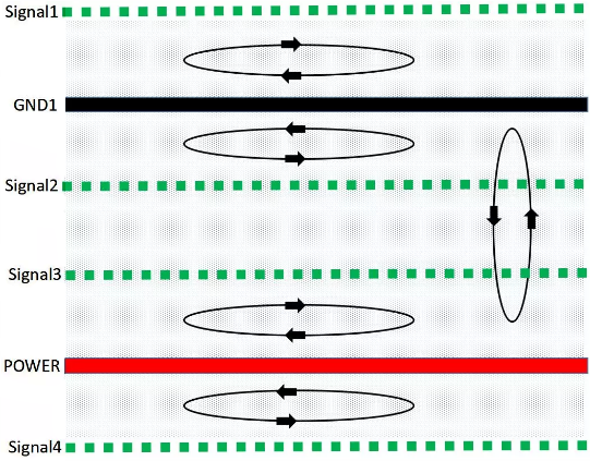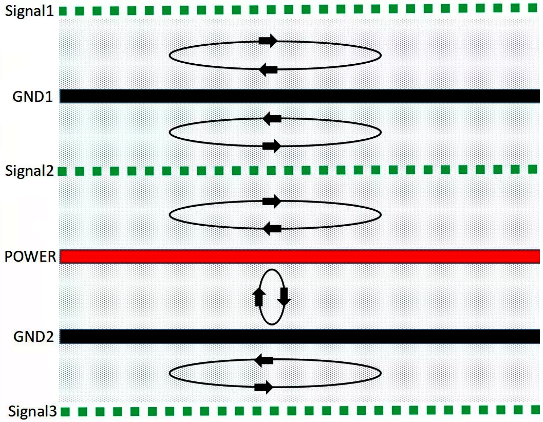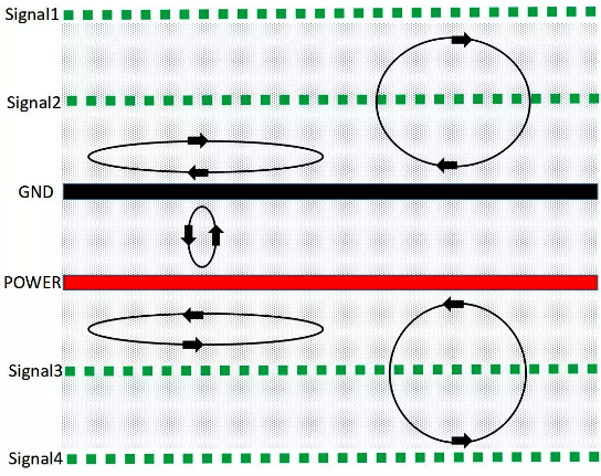 PCB疊層EMC規(guī)劃與設(shè)計(jì)思路的核心就是合理規(guī)劃信號(hào)回流路徑,盡可能減小信號(hào)從單板鏡像層的回流面積,使得磁通對(duì)消或最小化。