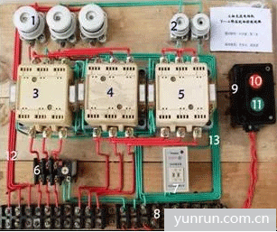 1、2、3是交流接觸器,4是時(shí)間繼電器,5是中間繼電器,6是電流互感器,7是熱繼電器,其中中間繼電器用于補(bǔ)充交流接觸器的輔助觸頭數(shù)量的不足。