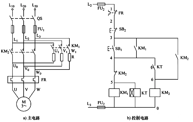 電動(dòng)機(jī)起動(dòng)時(shí),三相定子繞組串聯(lián)分壓電阻,實(shí)現(xiàn)減壓起動(dòng),起動(dòng)結(jié)束后,再將電阻短接,使電動(dòng)機(jī)全壓運(yùn)行。由于電阻的限流作用,三相異步電動(dòng)機(jī)起動(dòng)時(shí),利用串聯(lián)電阻分壓,降低繞組起動(dòng)電壓和干路起動(dòng)電流,同時(shí)串聯(lián)電阻減壓起動(dòng)控制線路有定子繞組不受電動(dòng)機(jī)接線形式的限制、控制電路簡單等優(yōu)點(diǎn)。