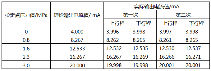檢定點(diǎn)壓力值/MPa|輸出電流/mA