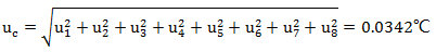 以上各分量獨(dú)立不相關(guān),按方和根得合成標(biāo)準(zhǔn)不確定度:
