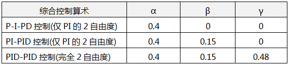 給定濾波器H(S)在實(shí)現(xiàn)2自由度PID控制時(shí)的α、β、γ推薦值
