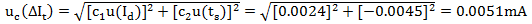 由于以下分析中Id的標(biāo)準(zhǔn)不確定度分量和ts的標(biāo)準(zhǔn)不確定度分量之間相互獨立,故: