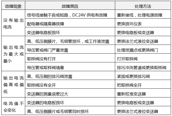 2、差壓式液位變送器常見(jiàn)故障及處理