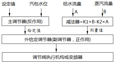 圖2 鍋爐汽包水位三沖量串級(jí)調(diào)節(jié)控制策略