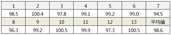 某次檢驗抽取了13個標注凈含量為100g的定量包裝商品,經(jīng)檢驗,其單件的實際含量如下表所示,請計算其判斷該檢驗批的凈含量是否合格,并列出判斷依據(jù)。(修正值:1.5g,允許短缺量:4.5g)