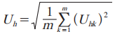 ,式中,Uhk為3s內(nèi)第k次測(cè)得的h次諧波的均方根值;m≥6為3s內(nèi)取均勻間隔的測(cè)量次數(shù)。電壓諧波含有率計(jì)算公式為