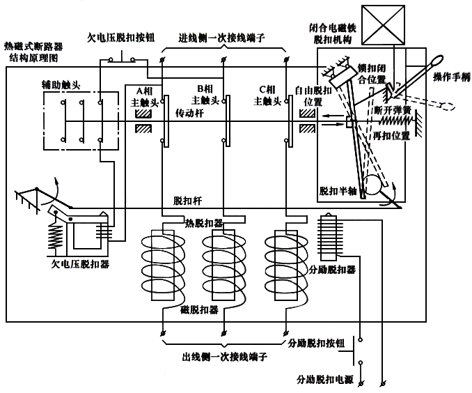 圖1 帶熱磁式脫扣器的斷路器結(jié)構(gòu)原理圖