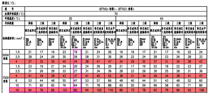 圖3 BTTVZ電纜載流量表