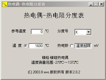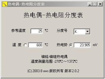 以上是昌暉儀表提供的“K型熱電偶分度表”,本站也可查閱S型熱電偶分度表和Pt100分度表。另外,本站提供了僅73k的“熱電偶-熱電阻分度軟件”供大家免費(fèi)使用。該軟件不用安裝,簡潔實用,是儀表技術(shù)人員必備工具軟件。