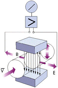 測(cè)量流量時(shí),導(dǎo)電性液體以速度V流過(guò)垂直于流動(dòng)方向的磁場(chǎng),導(dǎo)電性液體的流動(dòng)感應(yīng)出一個(gè)與平均流速成正比的電壓,其感應(yīng)電壓信號(hào)通過(guò)二個(gè)或二個(gè)以上與液體直接接觸的電極檢出,并通過(guò)電纜送至轉(zhuǎn)換器通過(guò)智能化處理,LCD顯示或轉(zhuǎn)換成標(biāo)準(zhǔn)信號(hào)4-20mA和0-1kHz。