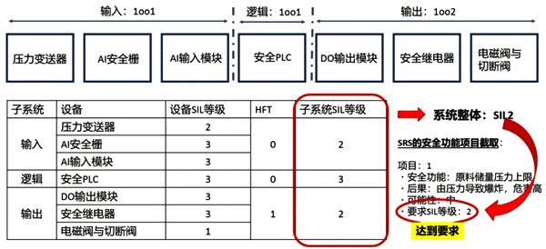 PFD(系統(tǒng))=PFD(壓力變送器)+PFD(安全柵)+PFD(輸入模塊)+PFD(安全PLC)+PFD(輸出模塊)+PFD(安全繼電器)+PFD(電磁閥和切斷閥)