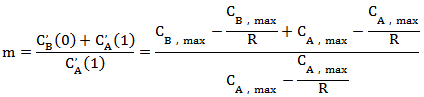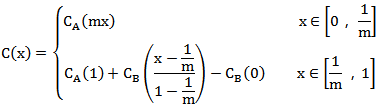 為求取分程點(diǎn),令公式(2)中函數(shù)C(x)在1/m處的左導(dǎo)數(shù)等于右導(dǎo)數(shù),則有: