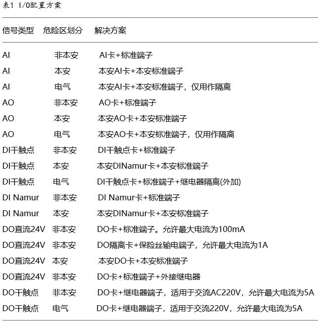 不同的信號(hào)類型通過不同的CHARM插槽配合不同的CHARM模塊來解決。不同的信號(hào)類型,有不同的解決方案,該裝置的I/O配置方案見表1所列。