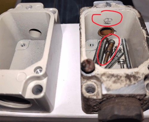 正品歐姆龍機(jī)械限位開關(guān)螺絲是通的;假歐姆龍機(jī)械限位開關(guān)鍍鋅螺絲。