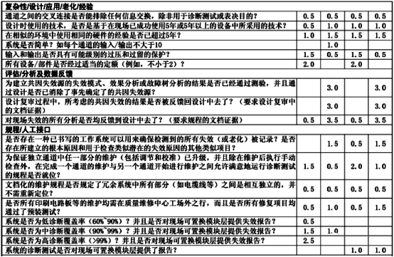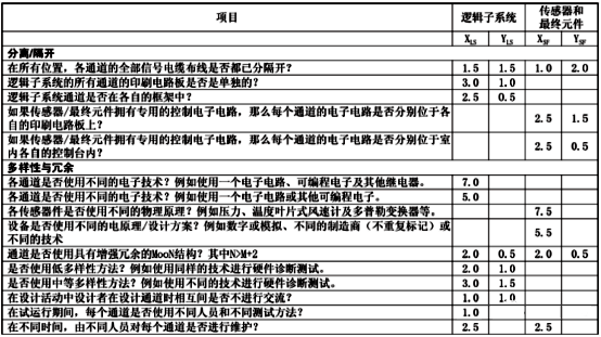 IEC61508-6:2010附錄D中給出了一種用表格打分估算共因失效系數(shù)β的方法,通過對傳感器、執(zhí)行器、安全型控制邏輯器在設計、制作、安裝、維護、使用環(huán)境等多方面進行評分。