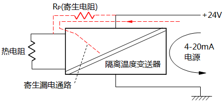 圖2 寄生漏電通路在隔離溫度變送器中的示意圖