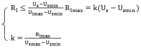 圖中橫坐標(biāo)表示儀表工作的電源電壓,縱坐標(biāo)表示儀表的負(fù)載能力,Usmax、 Usmin分別表示儀表正常工作的最大和最小電源電壓,Rlmax為最大工作電壓下的負(fù)載能力,圖中工作區(qū)指儀表能夠穩(wěn)定運行的區(qū)域,因此當(dāng)電源電壓為Us時,其回路負(fù)載Rl應(yīng)滿足以下公式: