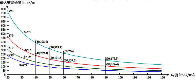 圖8 電纜最大敷設(shè)長度(220VAC供電)