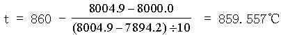 現(xiàn)測得某溫度點熱電勢值為8000.0μV,該點的溫度t介于850-860℃之間,則