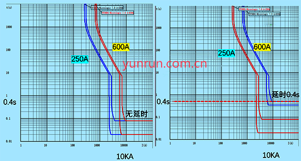 正是因為0.4s是允許的極限溫度時間,所以低壓配電設計操作時,一般不拿短延時作為保護選擇性的手段,通常變壓器出現(xiàn)主開關設置0.4s的短延時,其他下級開關不做延時。