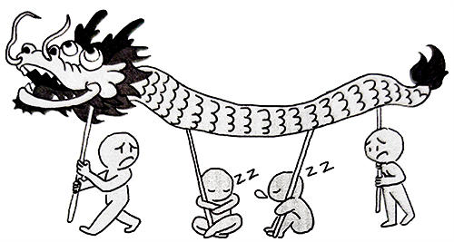 圖1 本來(lái)龍尾巴這一頭的控制指令可以通過(guò)一個(gè)人、一個(gè)人往下傳,控制整個(gè)舞龍動(dòng)作的,但中間有兩個(gè)人開(kāi)小差,這龍就舞不起來(lái)了,換句話說(shuō),不可控了