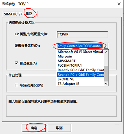 3、右鍵“TCP/IP”-“系統(tǒng)參數(shù)”-“單位”-選擇自已電腦的網(wǎng)卡Auto.1-“確定”