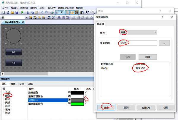 9、“顏色”-右鍵燈泡選擇“動(dòng)態(tài)對(duì)話框...”-填入相關(guān)設(shè)置-“確定”