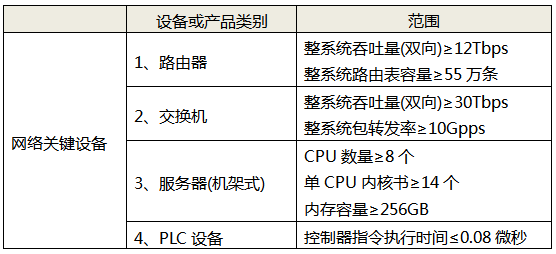 目前,根據(jù)四部門聯(lián)合發(fā)布的公告《網(wǎng)絡(luò)關(guān)鍵設(shè)備和網(wǎng)絡(luò)安全專用產(chǎn)品目錄(第一批)》,第一批網(wǎng)絡(luò)關(guān)鍵設(shè)備包括了性能較高的路由器、交換機、服務(wù)器和PLC設(shè)備,具體設(shè)備類型及范圍如下表: