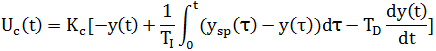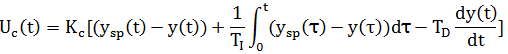 在實際應(yīng)用中,這種形式的PID在設(shè)定值變化時,由于微分作用會導(dǎo)致控制輸出的大幅度變化。實際應(yīng)用中PID往往采用不完全微分,即使這樣設(shè)定值變化時,控制器的輸出還是變化比較大,為了在偏差變化時控制器及時采取動作同時防止設(shè)定值變化時的不希望動作,PID變形為PI-D形式。即PI作用于偏差,D作用于測量值。PID的三個參數(shù)同時作用于設(shè)定值和測量值的偏差。