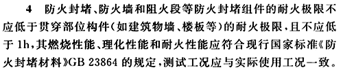 3.2.2 第7.0.3條中的第3小點(diǎn)提到具體的防竄燃方式的具體做法,即:“可在防火墻緊靠?jī)蓚?cè)不少于1m區(qū)段的所有電纜上施加防火涂料、阻火包帶或設(shè)置擋火板等”;第4小點(diǎn)中對(duì)防火封堵組件的耐火極限提出了明確的要求,該要求也可以側(cè)面印證前文中第1.9.2點(diǎn)中筆者的觀點(diǎn):