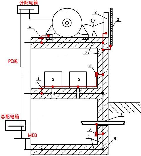 輔助等電位應(yīng)采取如下聯(lián)結(jié):① 金屬導(dǎo)管、電機(jī)基座、基礎(chǔ)內(nèi)鋼筋等可同時(shí)觸及的外露可導(dǎo)電部分和外界可導(dǎo)電部分應(yīng)形成等電位聯(lián)結(jié)。