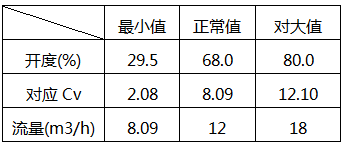 由工藝提供渣酸流量調(diào)節(jié)閥FV-04601工藝參數(shù)由表2得知: