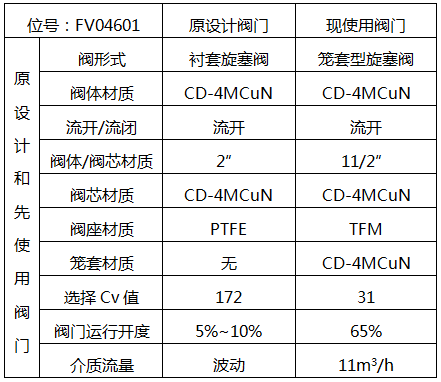 表4 原設(shè)計閥門和現(xiàn)使用閥門比較表