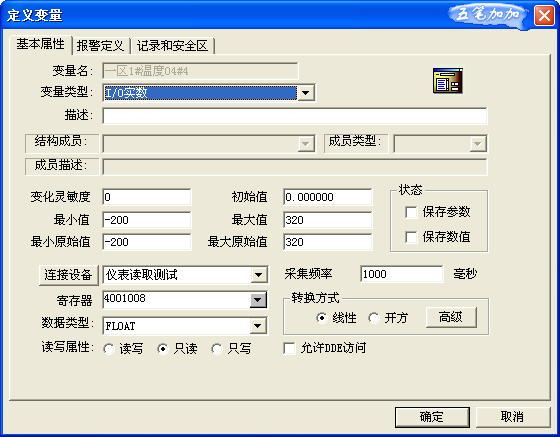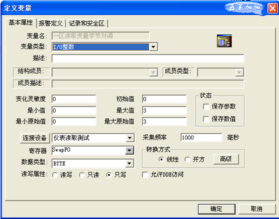 如果需要保存,可以把狀態(tài)選中。對于保存數(shù)據(jù),不在本討論中,請自行查看組態(tài)王的數(shù)據(jù)保存。