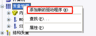 2、單擊選中“變量管理”,右鍵選中“添加新的驅(qū)動(dòng)程序”,如下圖所示: