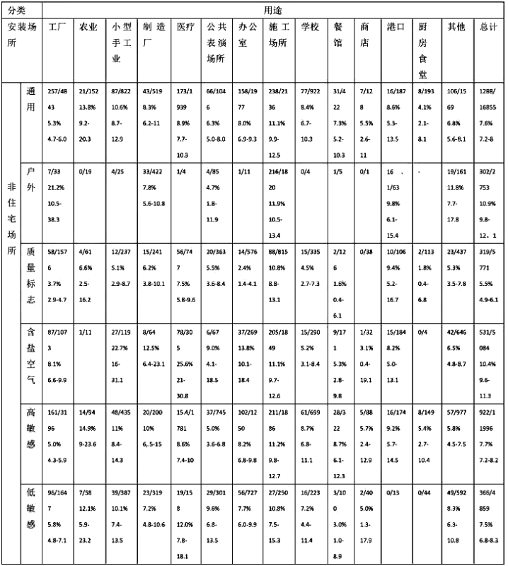 安裝在室外的故障率高于室內(nèi)。非住宅場所室外安裝的RCD故障率為11%。在建筑工地上,室內(nèi)外故障率沒有很大的差異(約8%),原因是RCD通常從一個建筑工地搬到另一個建筑工地,或者在同一建筑工地移動,室內(nèi)和室外的差別并不明顯。
