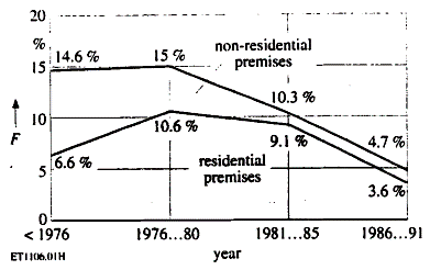 在比較不同安裝時間的RCD故障率時,可靠性應(yīng)慎重對待。事實(shí)上,安裝時間越長,RCD故障就越多,見圖1。僅1989年安裝在非住宅場所并于1990年測試的RCD故障率為3.2%。