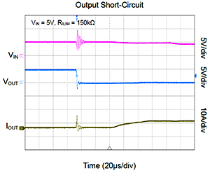 1、通過一個外接限流電阻,實現(xiàn)2A至5A限流門限設(shè)定,調(diào)節(jié)系統(tǒng)輸出的電流限制閾值,非常適合大電流應(yīng)用場合如PC、服務(wù)器、SSD驅(qū)動器和儀表類設(shè)備等。瞬態(tài)的輸出過電流不會觸發(fā)芯片保護(hù),避免系統(tǒng)波動而造成的宕機(jī)。